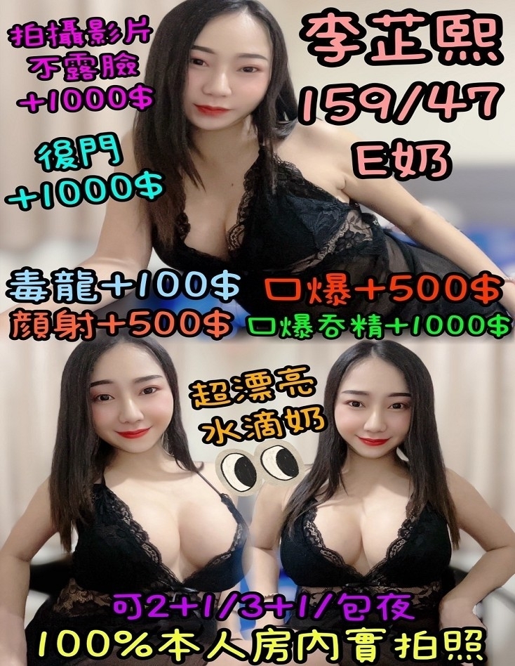 李芷熙 年齡: 24 罩杯: E 身高: 159 體重: 47KG 服務/類型:鴛鴦浴 無套吹 戴套做 6 9 品鮑 毒龍 口爆 吞精 按摩 奶砲 舔蛋 後門 顏...
