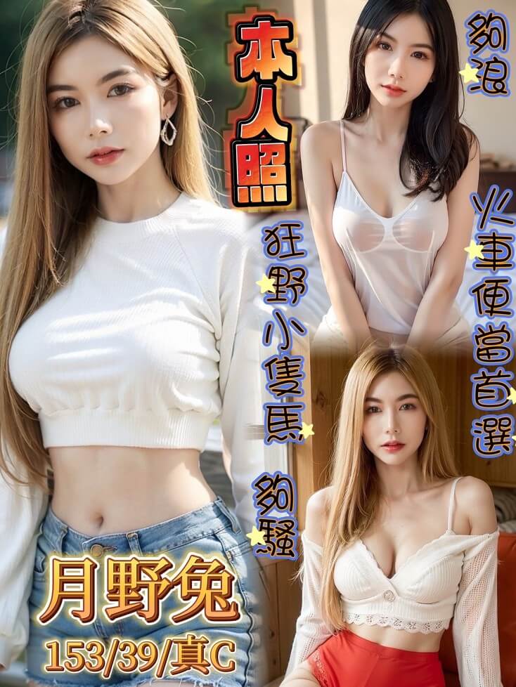 月野兔 年齡: 25 罩杯: C 身高: 159 體重: 39KG 服務/類型:無套吹 共浴 親嘴 胸推 品鮑 69 舔蛋 按摩 奶炮 可配合 親嘴 舌吻 (看客人衛生而定) 可配...